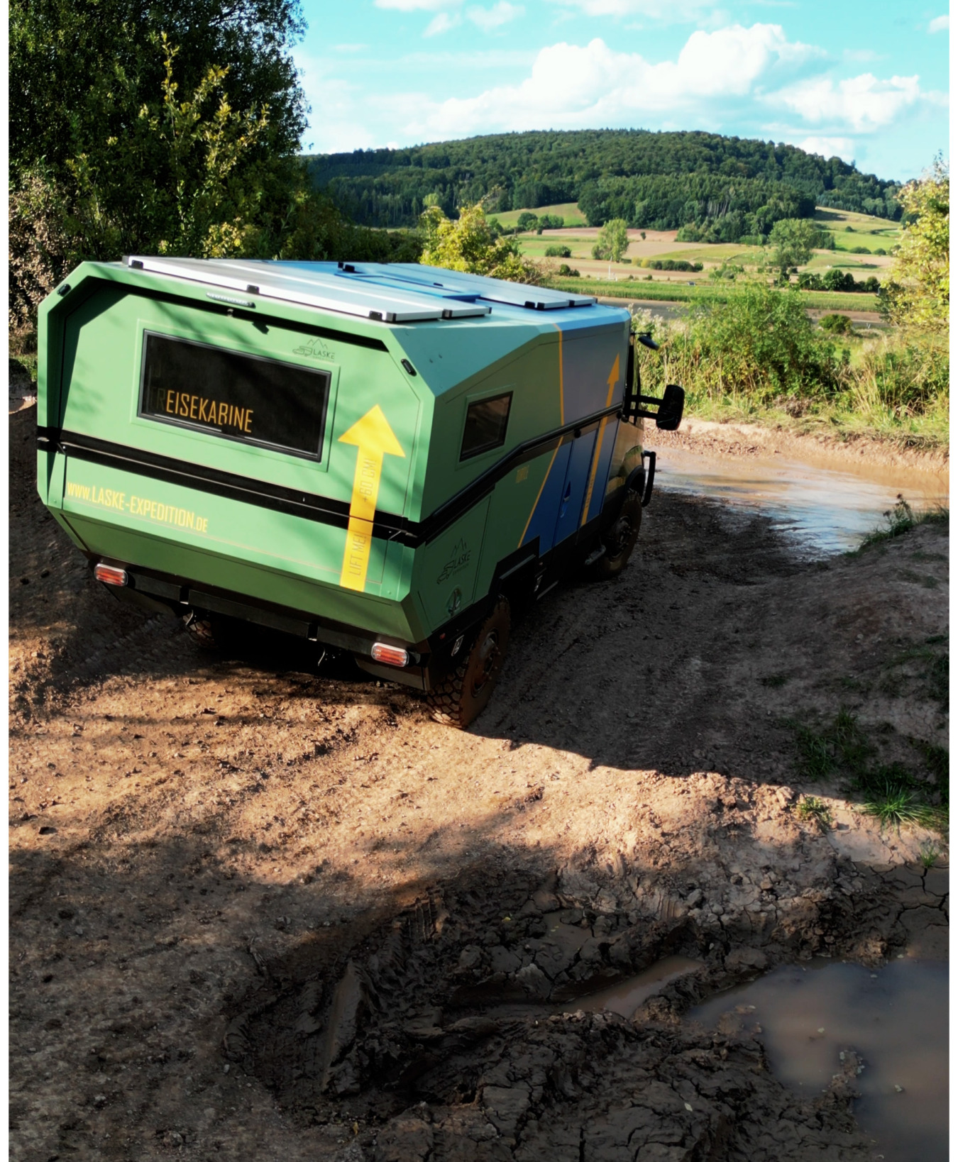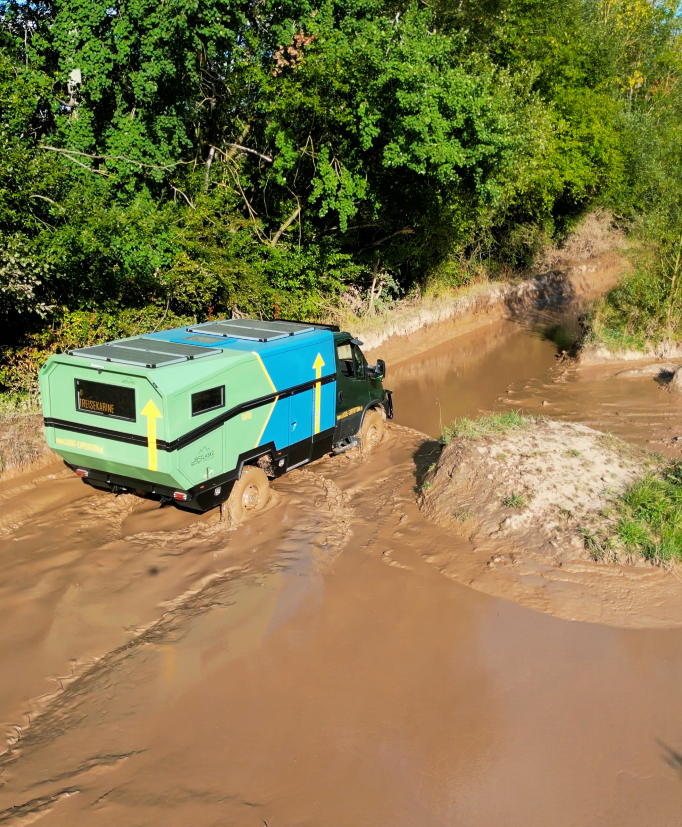 Grâce à son véhicule de base robuste, à son agencement intelligent et à ses composants fiables, cette construction d’expédition fonctionne comme une base mobile entièrement autonome, prête à voyager bien au-delà des routes goudronnées.