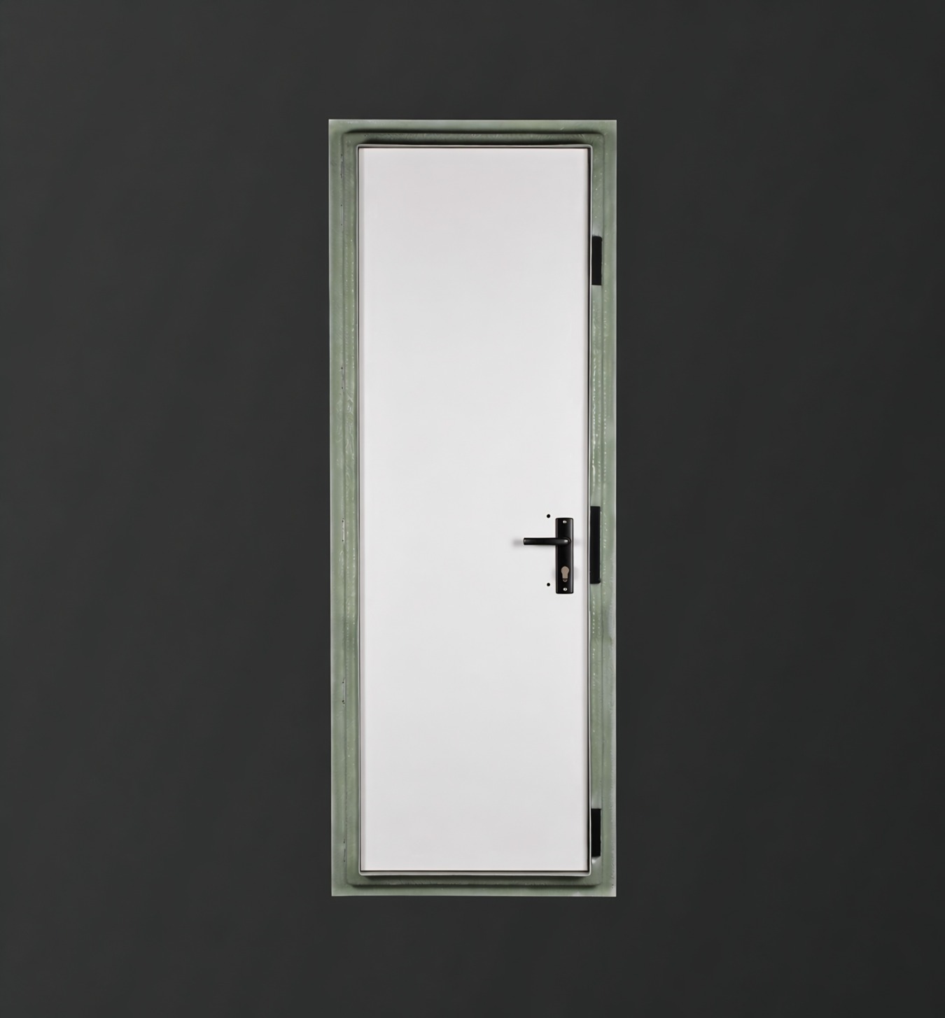 La construction de la porte est durable. L'intérieur et l'extérieur sont en plastique renforcé de fibres de verre (GFRP), qui est solide, résistant aux chocs et adapté à une utilisation en extérieur. À l'intérieur, un noyau de mousse à cellules fermées assure une isolation élevée et empêche les ponts thermiques. Cette structure offre un bon équilibre entre résistance et poids, ce qui est important pour les véhicules dont la capacité de charge est limitée. Le boîtier de la serrure est en aluminium anodisé noir et résistant à la corrosion. Grâce à son design plat, la porte s'ajuste au ras du mur, ce qui simplifie l'installation et crée une finition propre, sans parties saillantes.